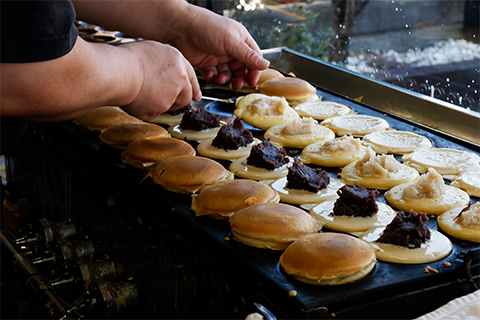 『ヒット焼き』は円盤のような形をしたもっちり生地の中に、あんこがずっしり!あずきあんと白あんの二種類が楽しめます。